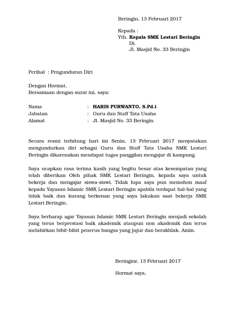 Contoh Surat Resign Kerja Word : Contoh Surat Pengunduran Diri Kerja Resign Sopan Baik Benar - Maybe you would like to learn more about one of these?. We did not find results for: Check spelling or type a new query. Maybe you would like to learn more about one of these? Contoh surat resign kerja word.
